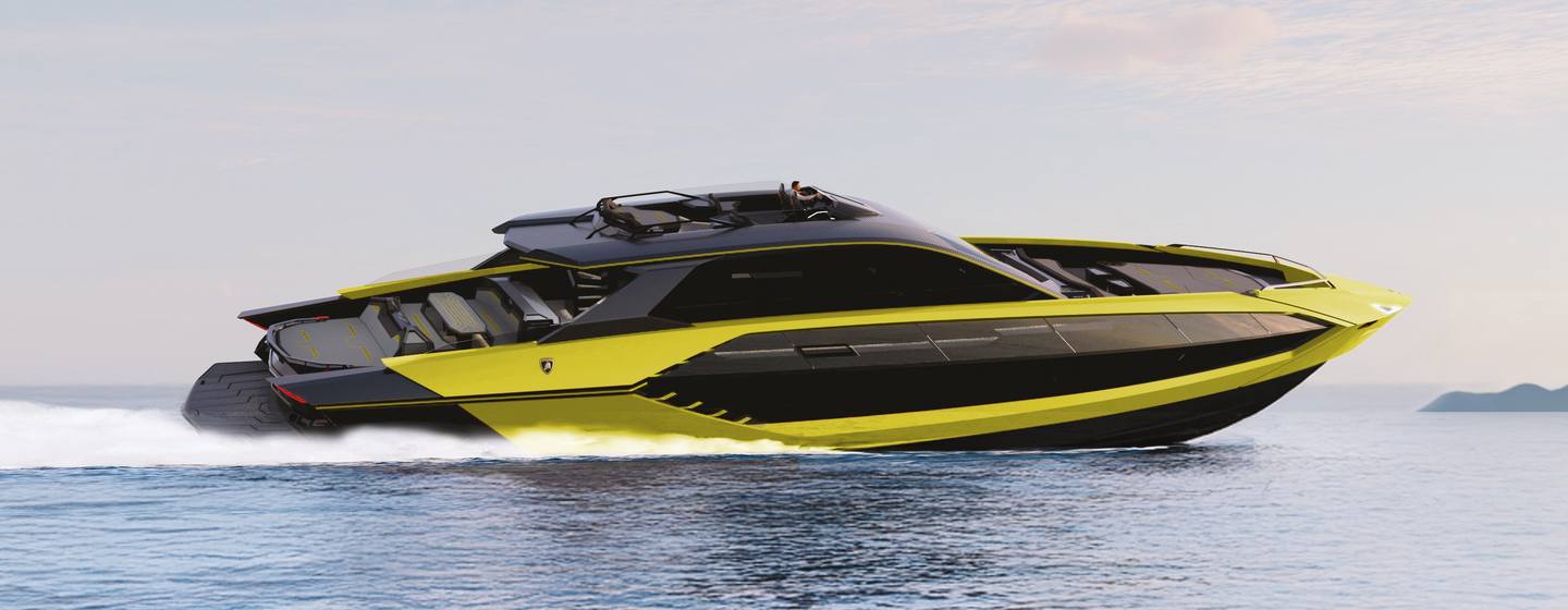 The exterior takes its cues from Lamborghini’s hypercars with sharp hexagonal motifs, an aerodynamic silhouette and a low profile; owners can even match the yacht’s livery to their Lamborghini road car.